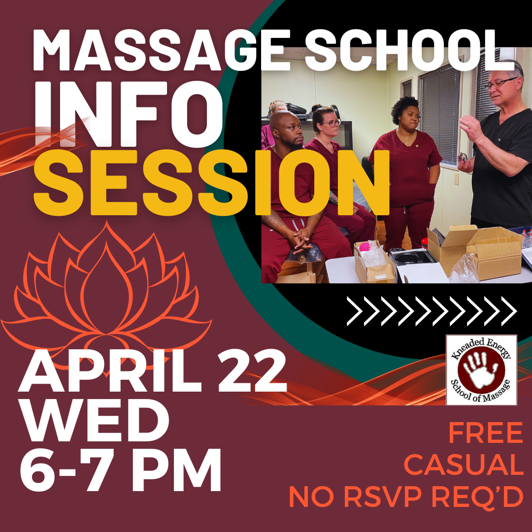 Come join us for a very informative session to learn all about going to Massage School. Becoming a Massage Therapist is a great way to break into the field of Holistic Healing, where the options are endless. We are located in Greensboro, 321 W. Wendover Ave. During this session we will tell you all about the profession, the curriculum, the requirements for getting licensed and about financial options. We will answer all your questions. We start at 6pm and are finished within the hour. Bring a friend or family member. It is free and no RSVP is required. If you have questions, feel free to call 336.235.3997. We look forward to meeting you and getting you started into a career and lifestyle that will bring you joy. Come join us.